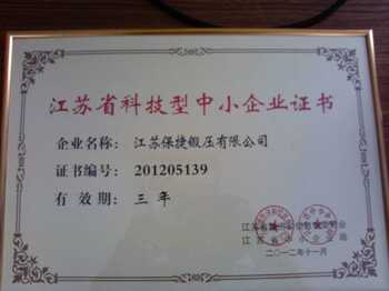 江蘇保捷鍛壓有限公司資信等級為AAA級